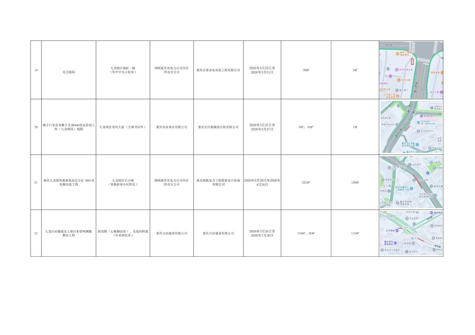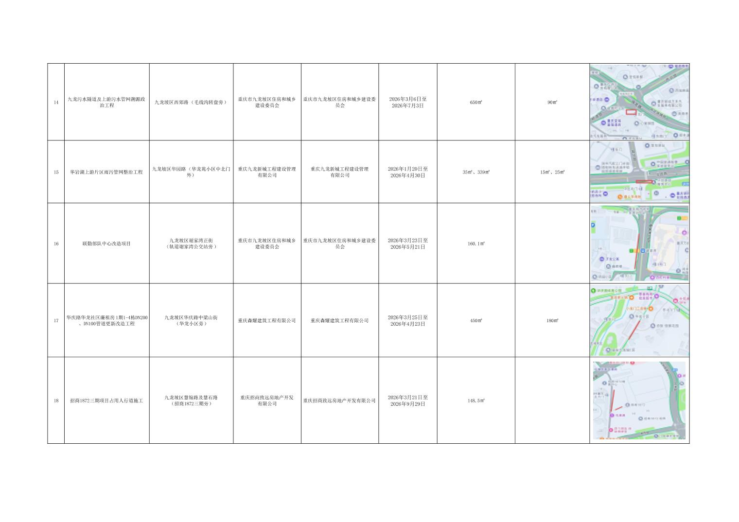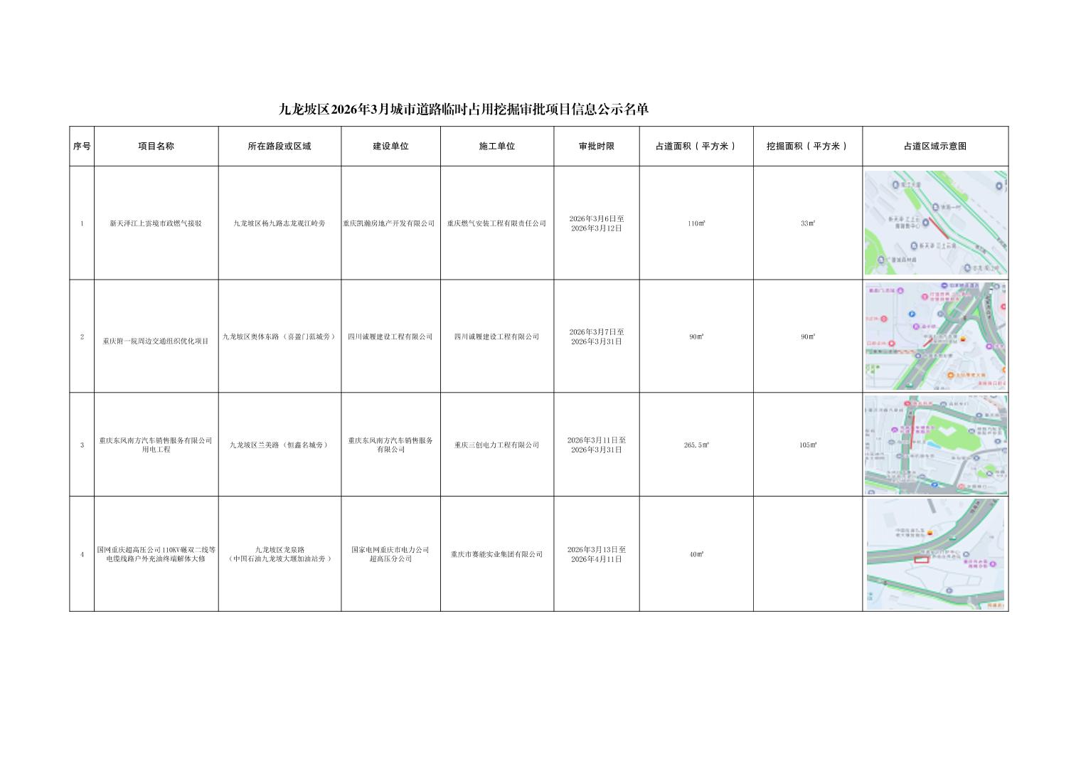 关于九龙坡区2026年3月城市道路临时占用挖掘审批项目信息的公示