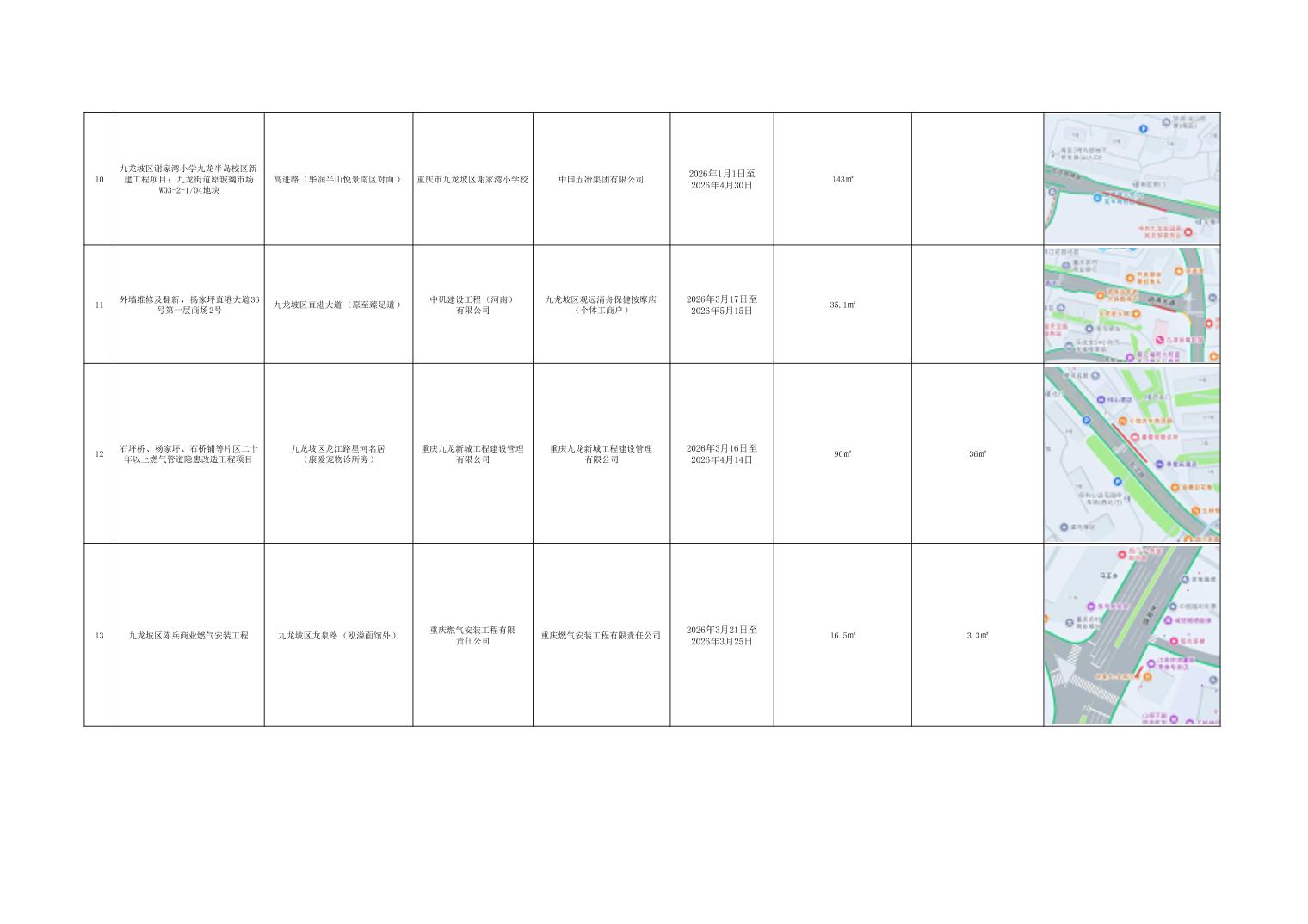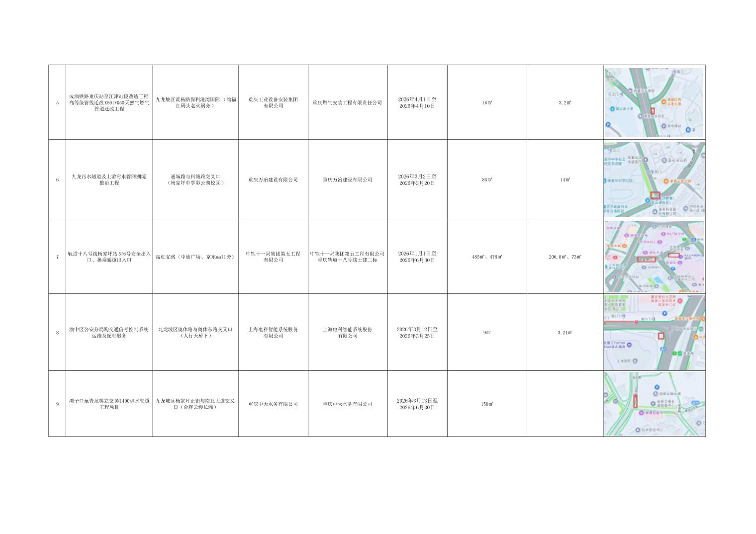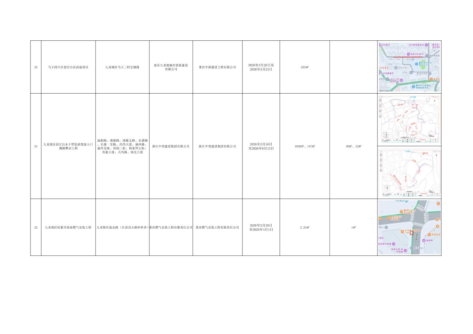 关于九龙坡区2026年3月城市道路临时占用挖掘审批项目信息的公示