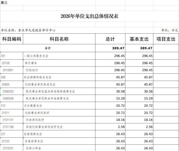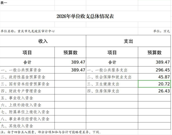 重庆市九龙坡区审计中心2026年单位预算情况说明