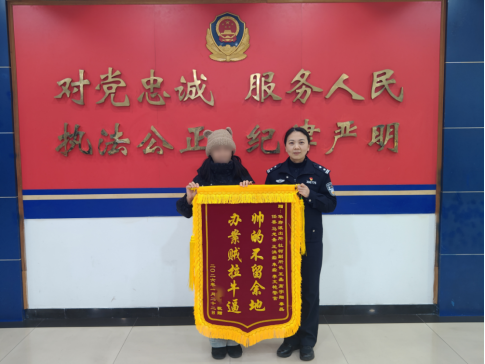 近日,辖区居民饶女士将一面写着“帅的不留余地 办案贼拉牛逼”的创意锦旗送至九龙坡区公安分局华岩派出所,以此表达对民警的感激之情。