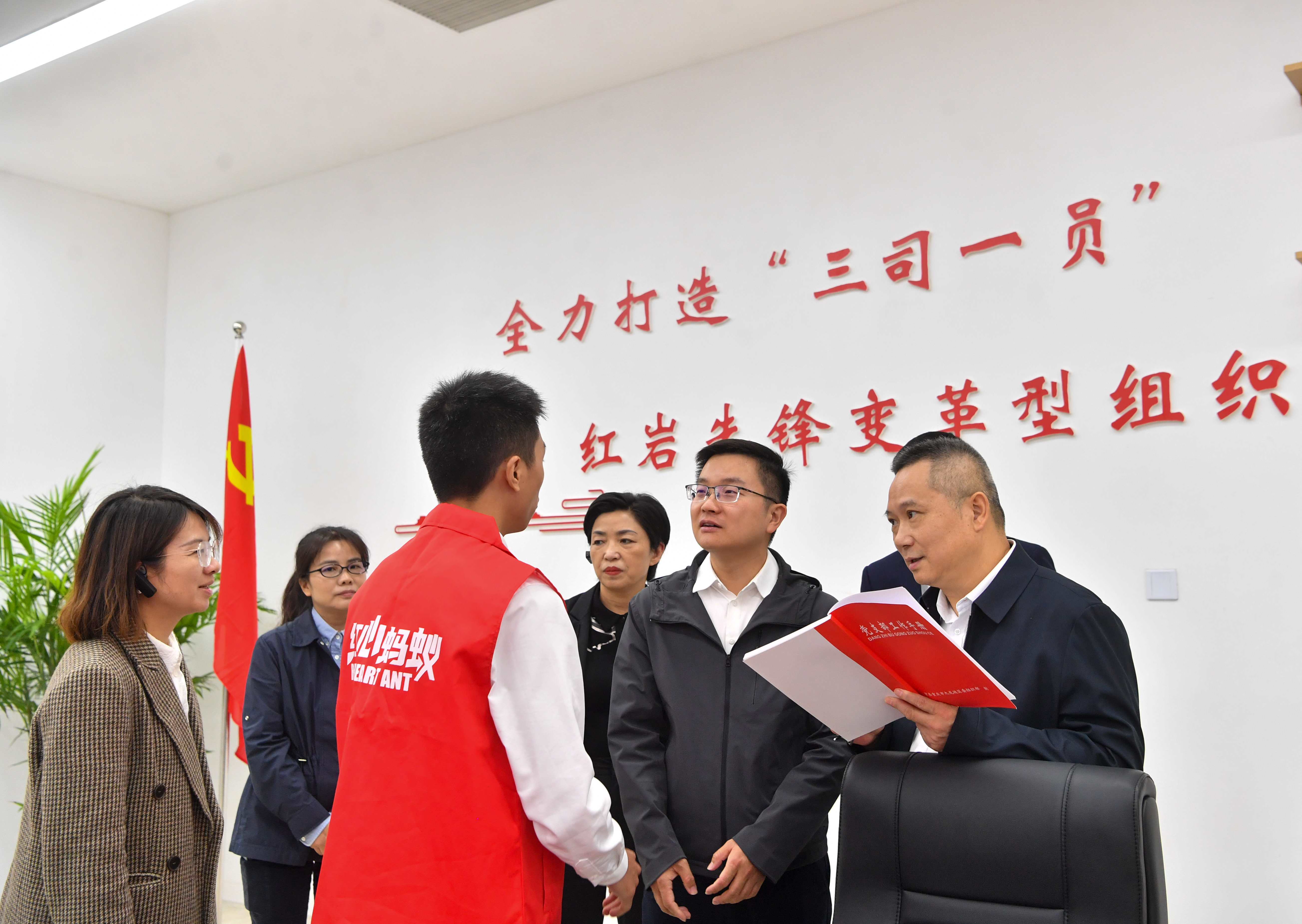 10月22日,全市交通运输新就业群体党建工作推进会对九龙坡区红心蚂蚁登途驿站进行现场调研。交通运输部公路科学研究所(院)交通运输新就业群体党建指导服务中心副主任魏攀一、市交通运输委党委专职副书记李关寿、市道路运输事务中心主任邱文军、九龙坡区副区长刘峥,以及市交通运输委系统、区县交通运输主管部门相关领导和行业协会、行业重点企业负责人参与调研。