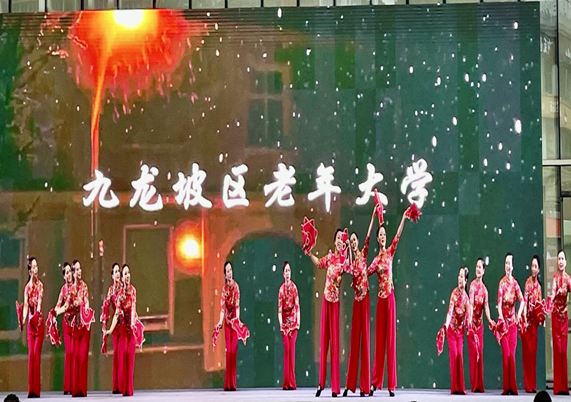 在九龙坡区养老服务消费季暨敬老月活动启动仪式的现场,九龙坡老年大学的学员们以一支灵动的暖场舞,为这场敬老盛会奏响了活力序曲。她们身着精心搭配的服饰,红似晚霞般在舞台中央舒展身姿。举手投足间,既有岁月打磨出的沉静气度,又洋溢着对生活的炽热深情,旋转的舞步似时光流转的涟漪,将“老有所学、老有所乐”的老年教育精神诠释得淋漓尽致,瞬间攫住全场目光。