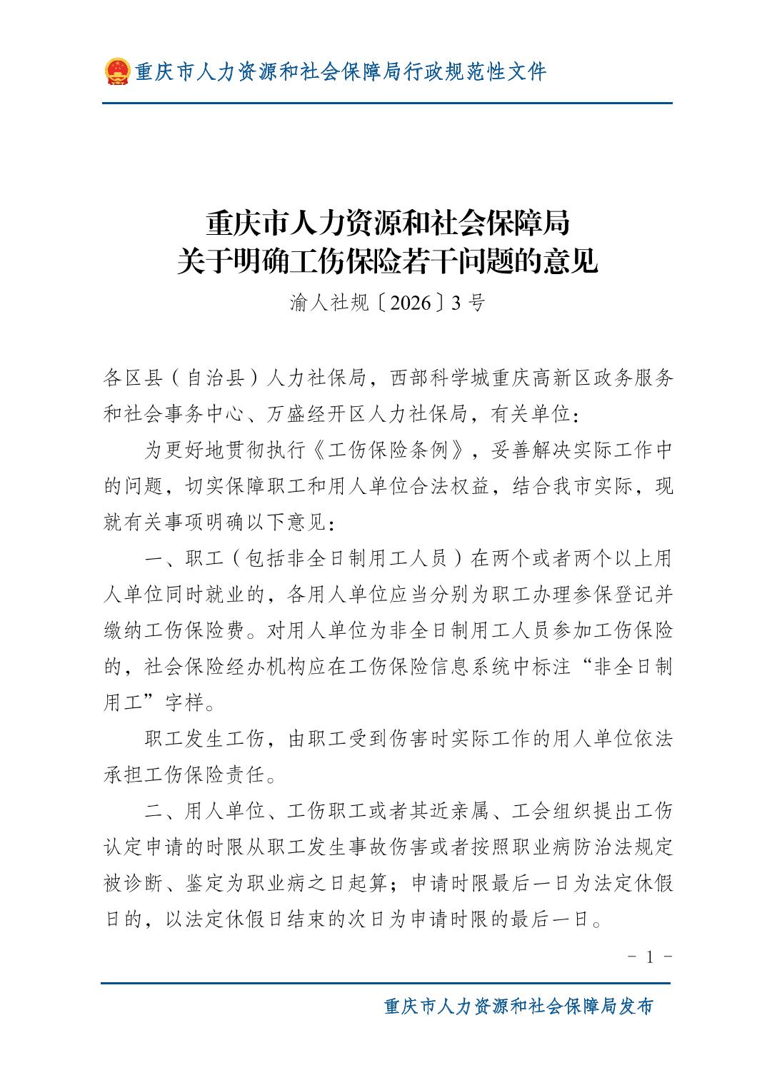 重庆市人力资源和社会保障局关于明确工伤保险若干问题的意见