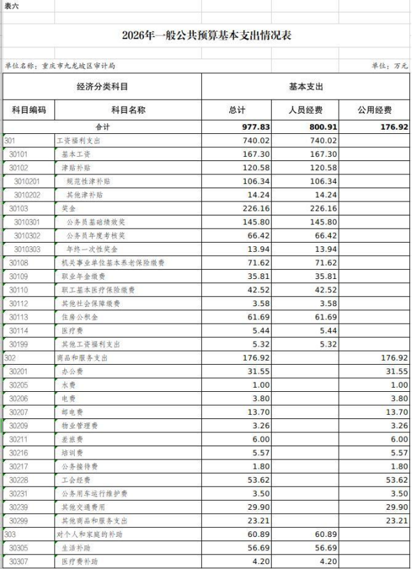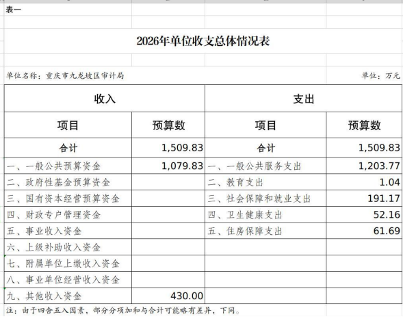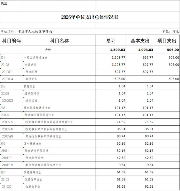 重庆市九龙坡区审计局2026年单位预算情况说明