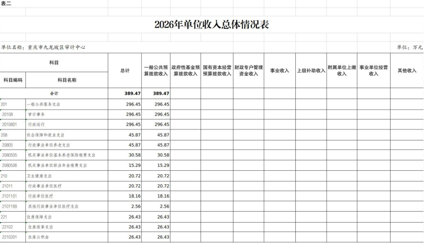 重庆市九龙坡区审计中心2026年单位预算情况说明