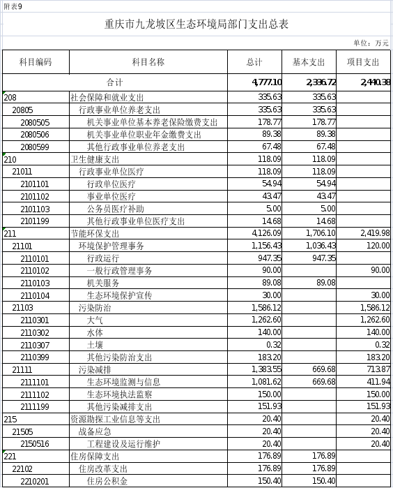 9.2026年重庆市九龙坡区生态环境局支出总表(功能科目分类到项)