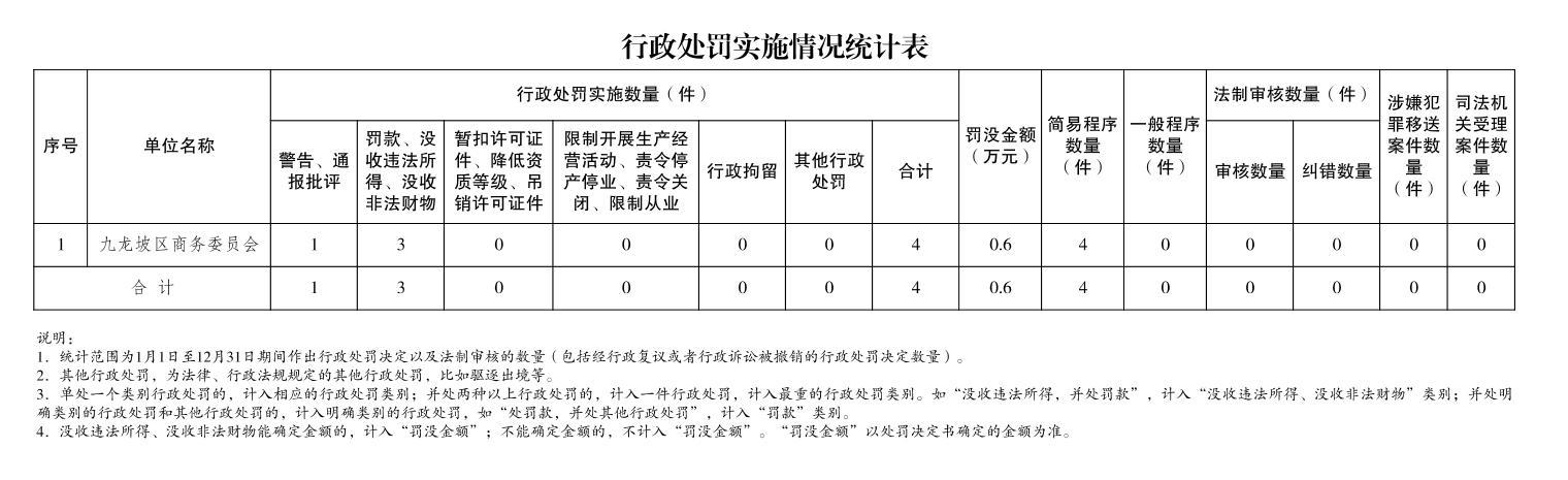 重庆市九龙坡区商务委员会2025年度行政执法数据统计表