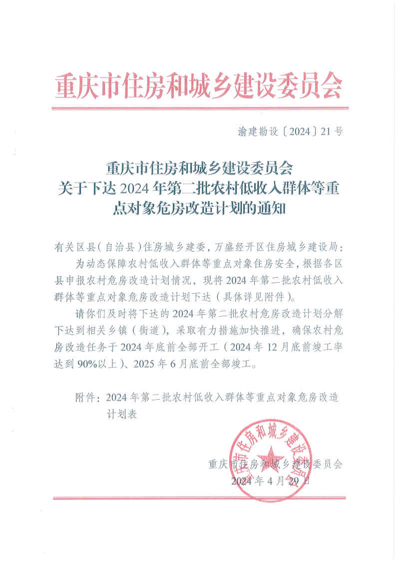 关于下达2024年第二批农村低收入群体等重点对象危房改造计划的通知