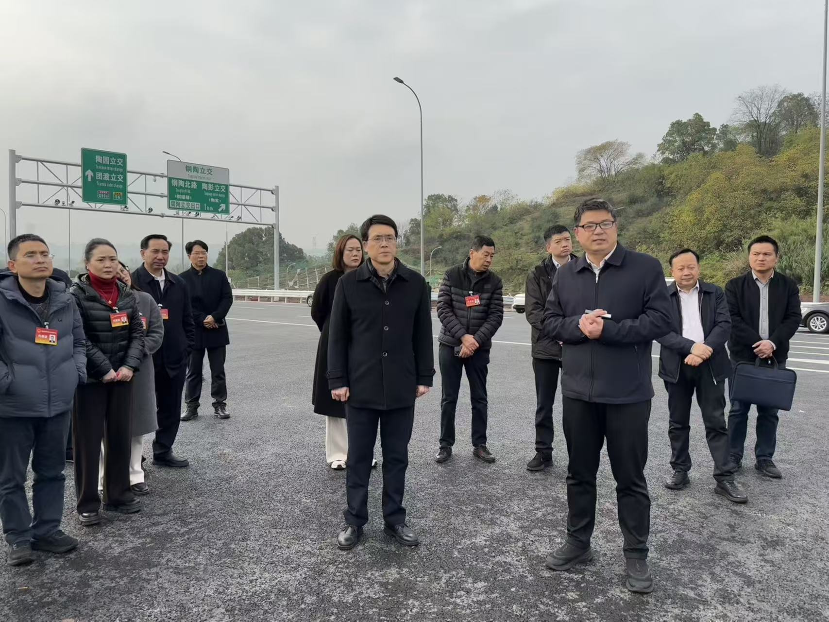 2025年12月25日下午,市人大常委会委员、市人大教科文卫委员会主任委员,区人大常委会党组书记、主任组织市六届人大九龙坡联系组代表开展会前集中学习视察,区委常委、区纪委书记周道君,区人大常委会一级巡视员、副主任参加视察。市六届人大代表们一行深入陶家隧道项目现场,实地察看项目建设情况,详细了解项目扫尾工作推进情况及后续开通计划。委党组成员、副主任陪同并作现场汇报。视察组对项目现阶段取得的建设成效给予充分肯定,要求要持续抓好城市交通基础设施建设,不断跨越关口、提升能级,并表示要充分发挥市人大代表作用齐心协力推动枢纽港产业园九龙新城建设。