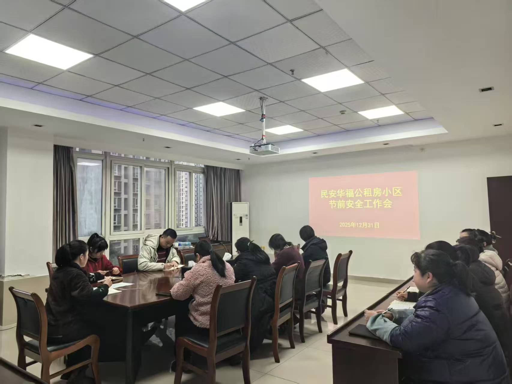 区住保房管中心扎实做好元旦节安全稳定工作,及时统筹部署,压实安全责任。召开节前安全稳定工作部署会,传达主管部门及上级各单位安全生产工作会议精神,压实房管中心、物业公司、社区居委会、小区一线入驻单位主体责任。加强应急值守,严格落实值班值守制度,规范应急信息报送流程,确保突发情况第一时间响应处置。