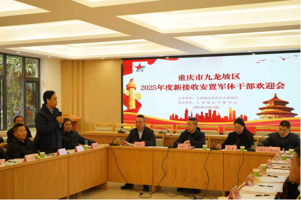 2025年12月,九龙坡区军休中心举行2025年新接收军休干部欢迎会,22名新接收军休干部、军休干部代表及中心全体工作人员共60余人参会。区退役军人事务局党组书记、局长秦亚杰出席会议并讲话。