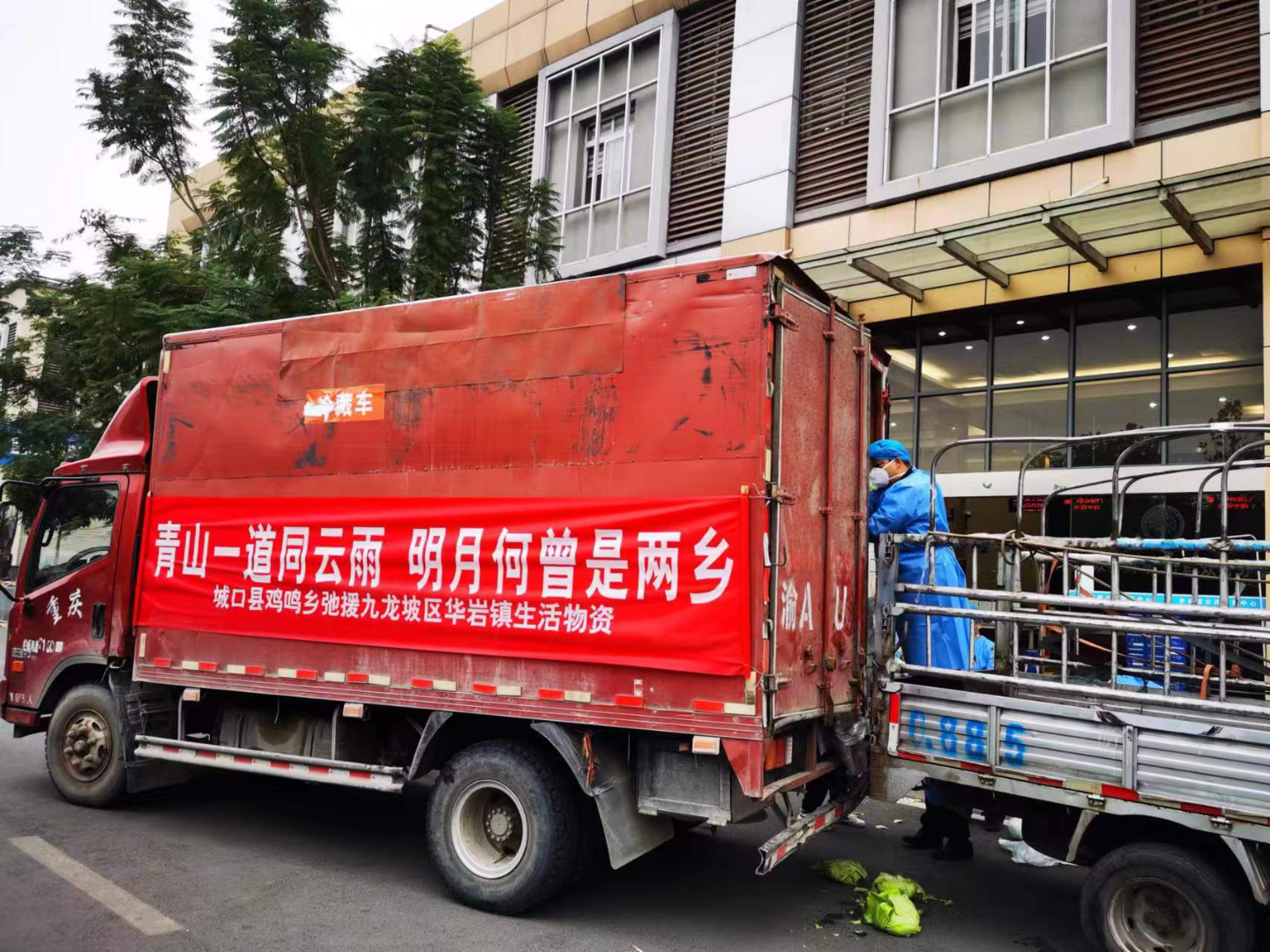 守望相助,同心抗疫,11月21日城口县鸡鸣乡带着全乡人民的深情厚意,为华岩镇送来10000斤蔬菜和1000斤大米,助力华岩镇疫情防控“保胃战”。