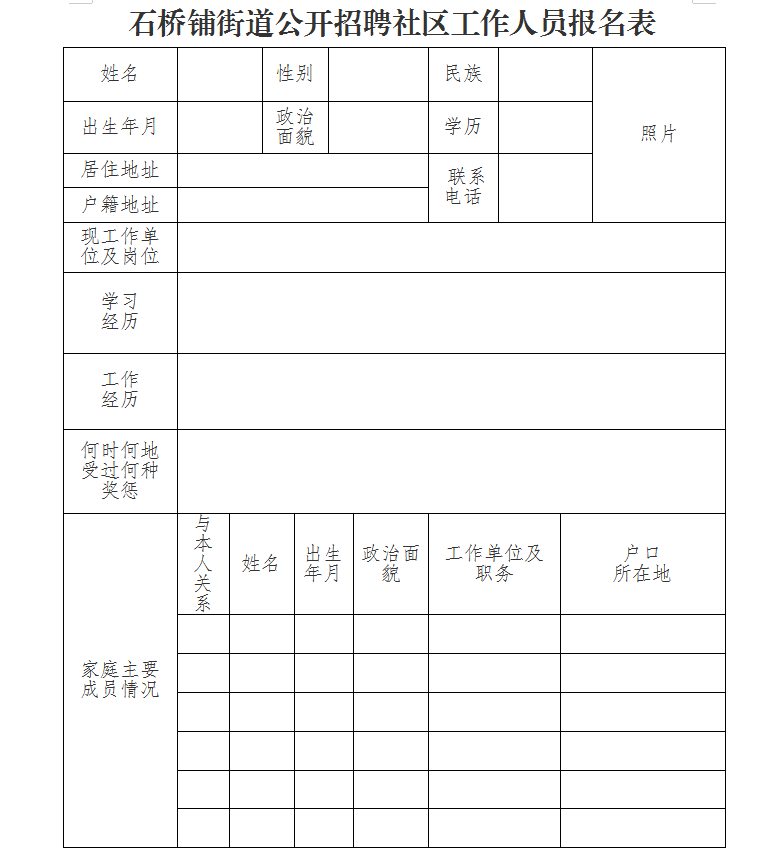 附件:《石桥铺街道公开招聘社区工作人员报名表》