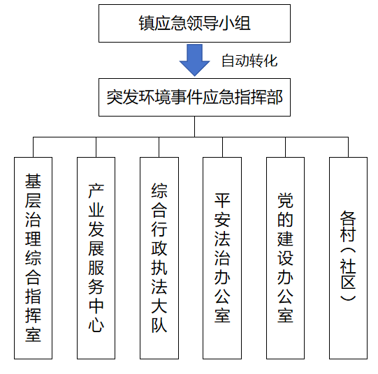 本预案属于环境应急综合预案,主要包括突发环境事件的应对原则、组织机构与工作职责、突发环境事件应急基本程序与规范要求,严格按照预案要求明确各类事件情景下的污染防控措施,责任分工、人员配备、工作流程、具体措施等。本镇突发环境事件应急预案与其他应急预案的衔接关系见图1-1。