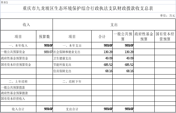 附表:1.2026年重庆市九龙坡区生态环境保护综合行政执法支队财政拨款收支总表