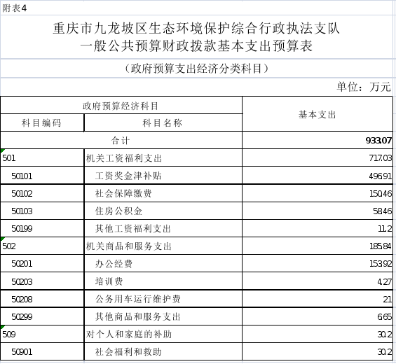 4.2026年重庆市九龙坡区生态环境保护综合行政执法支队一般公共预算财政拨款基本支出预算表(政府预算支出经济分类科目)