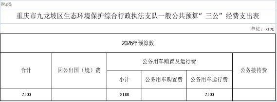 5.2026年重庆市九龙坡区生态环境保护综合行政执法支队一般公共预算三公经费支出表