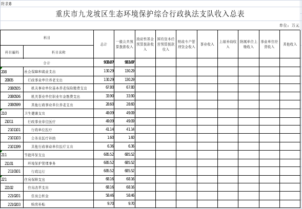 8.2026年重庆市九龙坡区生态环境保护综合行政执法支队收入总表