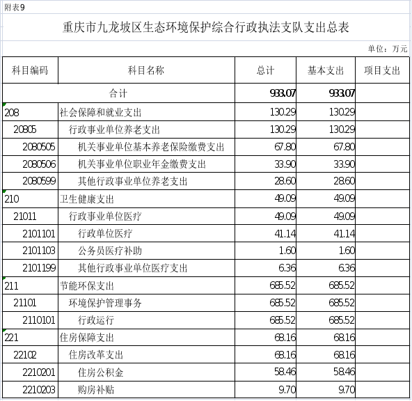 9.2026年重庆市九龙坡区生态环境保护综合行政执法支队支出总表(功能科目分类到项)
