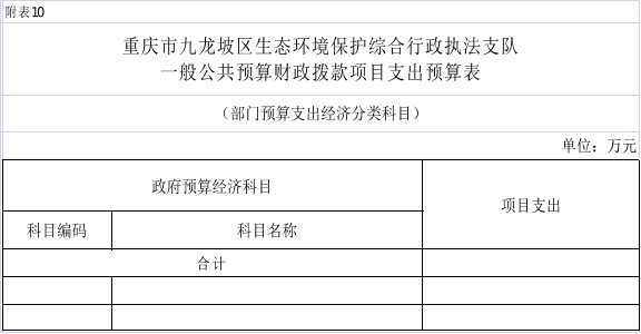 10.2026年重庆市九龙坡区生态环境保护综合行政执法支队一般公共预算财政拨款项目支出预算表(部门经济分类科目)