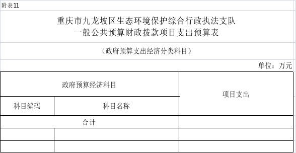 11.2026年重庆市九龙坡区生态环境保护综合行政执法支队一般公共预算财政拨款项目支出预算表(政府经济分类科目)