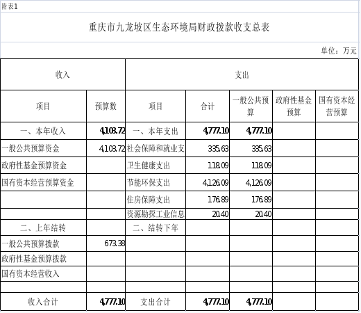 附表:1.2026年重庆市九龙坡区生态环境局财政拨款收支总表