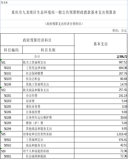 4.2026年重庆市九龙坡区生态环境局一般公共预算财政拨款基本支出预算表(政府预算支出经济分类科目)