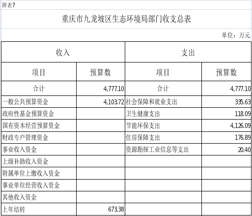 7.2026年重庆市九龙坡区生态环境局收支总表