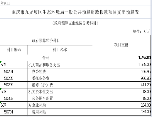 11.2026年重庆市九龙坡区生态环境局一般公共预算财政拨款项目支出预算表(政府经济分类科目)