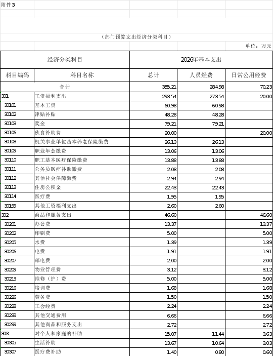 3.2026年九龙坡区一般公共预算财政拨款基本支出预算表
