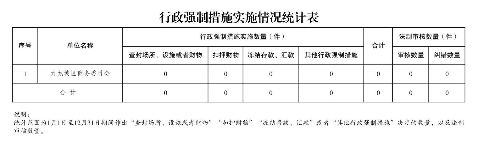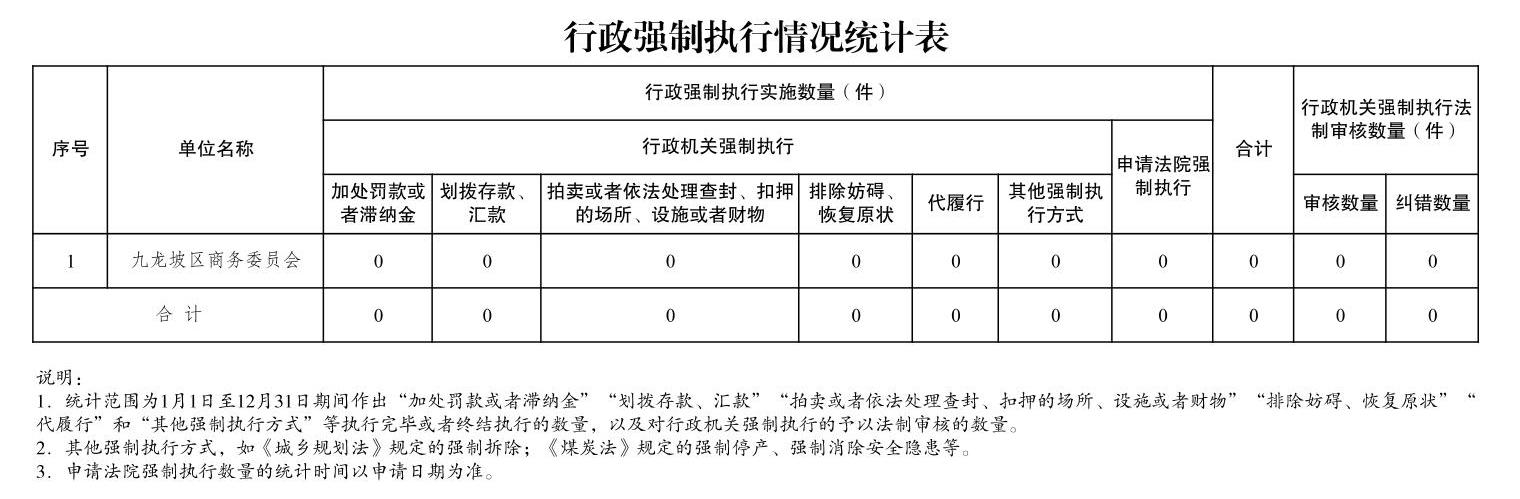 重庆市九龙坡区商务委员会2025年度行政执法数据统计表