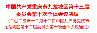 中国共产党重庆市九龙坡区第十三届委员会第十次全体会议于2025年12月12日召开。区委常委会主持会议。全会听取和讨论了覃昌德同志受区委常委会委托所作的工作报告,审议通过了《中共重庆市九龙坡区委关于制定重庆市九龙坡区国民经济和社会发展第十五个五年规划的建议》。覃昌德同志就《建议(讨论稿)》向全会作了说明。