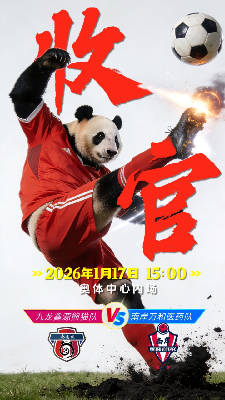 从揭幕战的热血启幕到收官战的压轴登场,渝超本赛季不仅点燃了重庆市民的体育热情,更成为城市文化的重要符号。本次奥体收官战既是两支球队争夺荣誉的关键一战,也是重庆足球爱好者见证本赛季精彩落幕的重要时刻。1月17日15:00,让我们齐聚重庆奥体中心,为九龙鑫源熊猫队呐喊,为渝超精神喝彩!