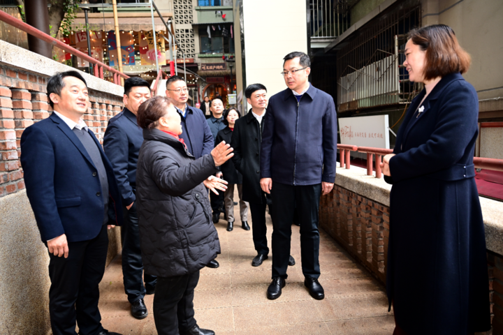 1月13日,区委书记覃昌德前往谢家湾街道,调研民主村社区“15分钟高品质生活服务圈”建设情况。