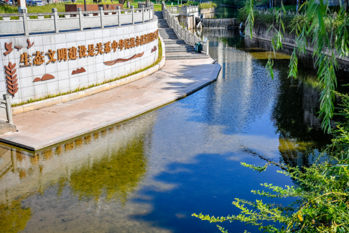 项目团队严格遵循山水林田湖草系统治理要求,打出“控、疏、防”组合拳,从源头到末端实现全链条治理,让污浊河水重归清澈。经过多年不懈努力,项目完成河道生态修复5.97万平方米,新增生态绿地面积65.29万平方米,新建生态步道25.14公里,全面消除劣Ⅴ类水体,实现了跳磴河水质提升、水景融合、人水相亲的华丽蜕变。