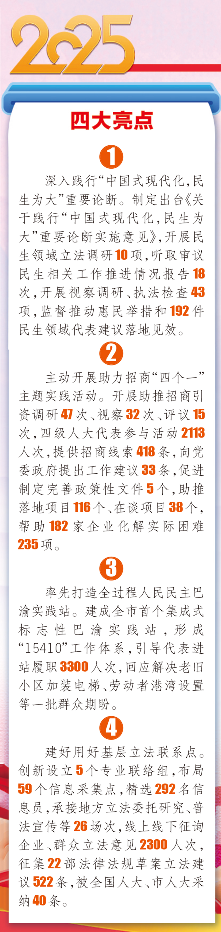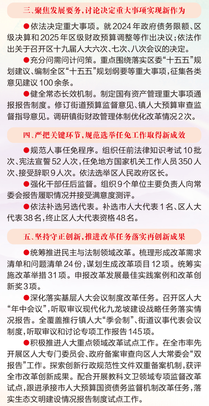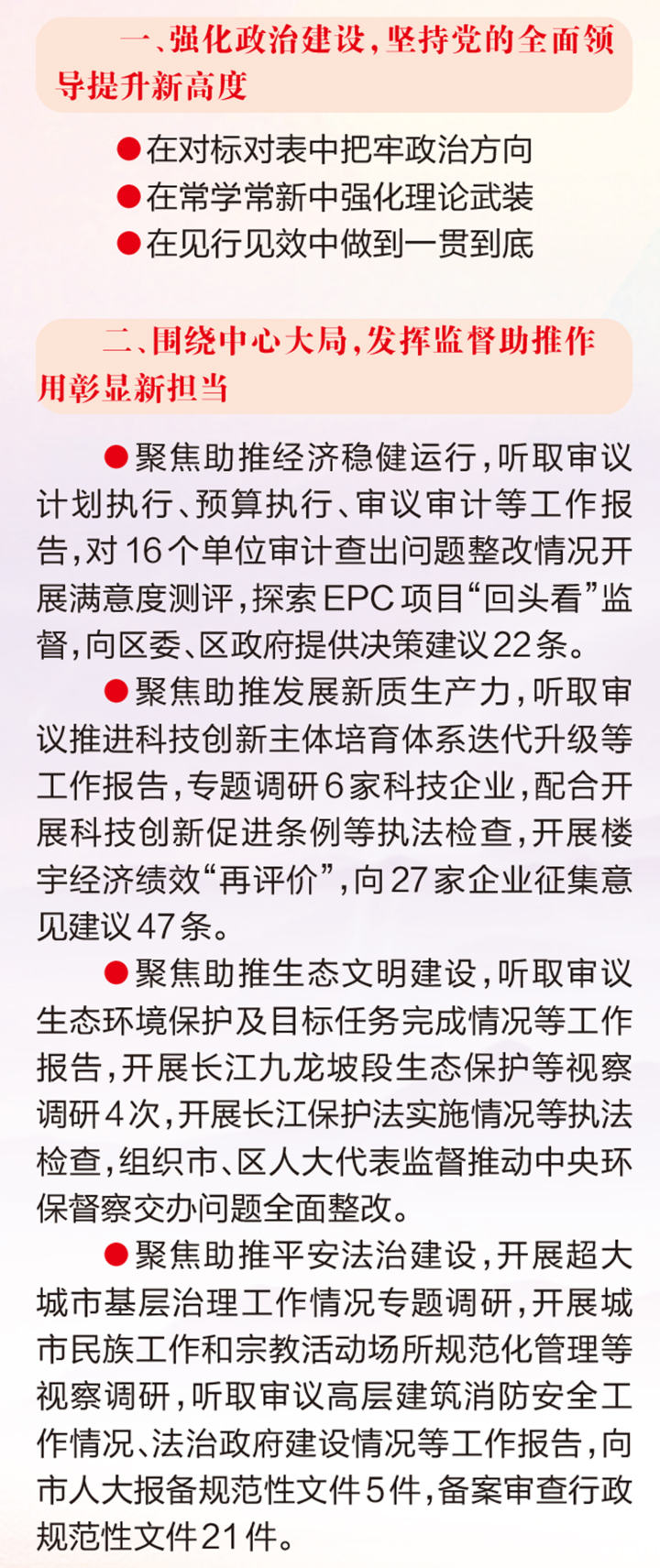 全年听取审议专项工作报告35项,交办书面审议意见60条,配合立法调研20次,开展执法检查、专题调研69项,作出决议决定6项,任免地方国家机关工作人员350人次。