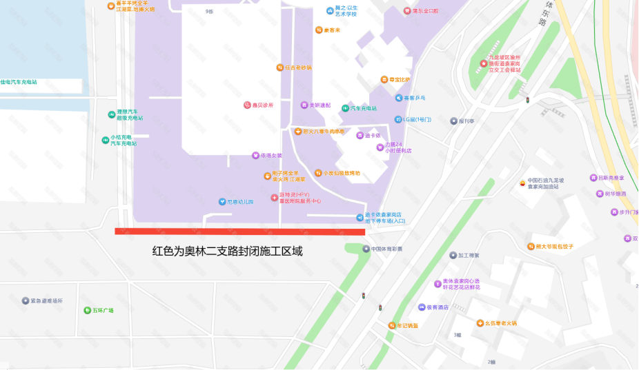 附件:奥林二支路封闭示意(封闭时间2026年2月7日至2026年2月27日)