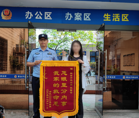 近日,辖区居民徐女士将一面印有“您眼里分内事 我家的救命恩”的锦旗送至九龙坡区公安分局歇台子派出所,感谢民警积极履职,救助其受伤家属。