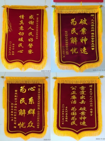 近日,市民李女士专程将一面印有“感谢人民好警察,情真意切暖民心”的锦旗送至九龙坡区公安分局九龙派出所,感谢民警不辞辛劳,助其找回走失家人。