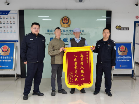 近日,辖区居民邓先生将一面印有“夜寻老人暖人心 人民警察为人民”的锦旗送至九龙坡区公安分局陶家派出所,感谢民警快速响应、积极作为,历经数小时深夜搜寻,成功将家中走失老人平安找回。
