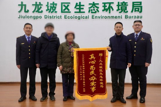 近日,渝州路街道居民向九龙坡区生态环境局赠送“真心为民办实事”锦旗,点赞我局高效解决民生诉求的工作作风。