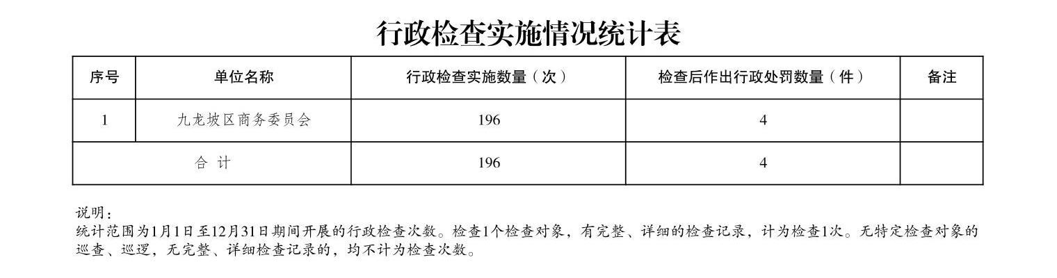 重庆市九龙坡区商务委员会2025年度行政执法数据统计表