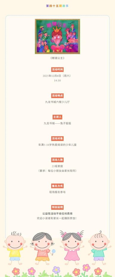 活动预告 | 奇思妙想故事汇——《眼镜公主》(2025年第45期)