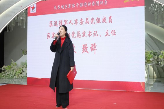 区退役军人事务局党组成员、军休中心主任李波发表热情洋溢的新春致辞,向全体军休干部致以最诚挚的问候和最崇高的敬意。致辞中,既回顾了过去一年军休服务保障工作的扎实成效,感谢老同志们始终心系国防和军队建设、情牵九龙坡发展,以老党员、老军人、老同志的担当发挥余热;还展望了2026年的发展蓝图,表示将持续优化服务举措,提升保障质效,让老同志们安享幸福军休生活。言辞恳切、暖意融融,赢得现场阵阵掌声。
