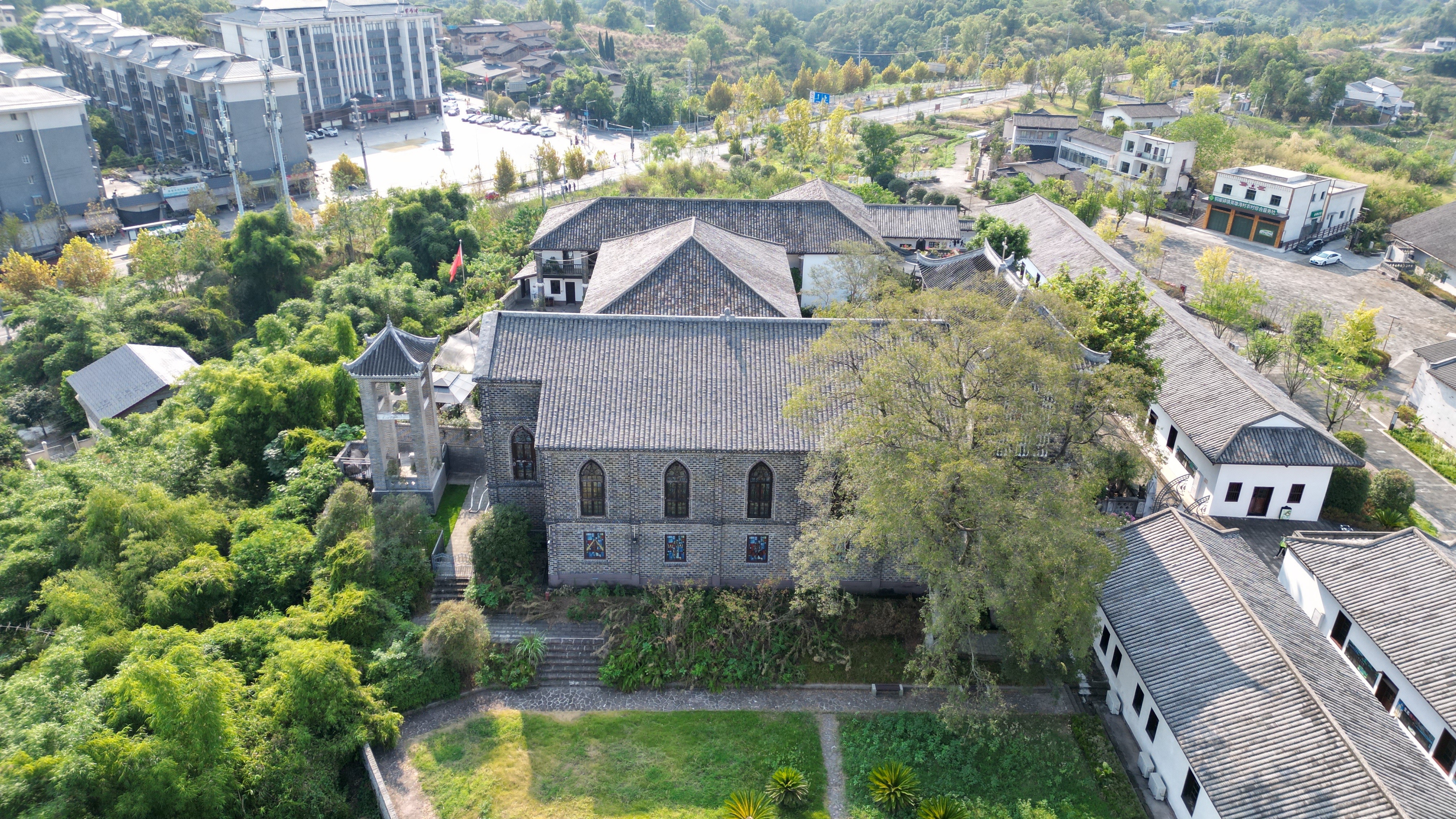 铜罐驿镇天主教堂始建于清光绪十四年(1888年),1898年被毁后原址重建,1923 年(民国十二年)教徒...