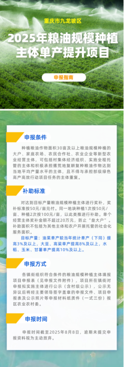 九龙坡区2025年粮油规模种植主体单产提升项目申报通知
