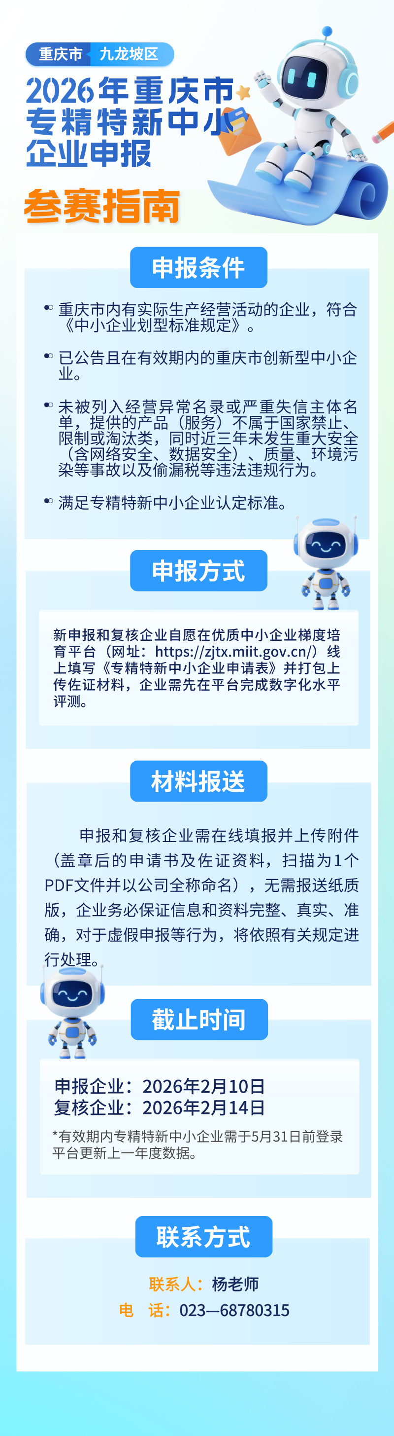 重庆市九龙坡区经济和信息化委员会关于开展2026年重庆市专精特新中小企业申报和复核工作的通知