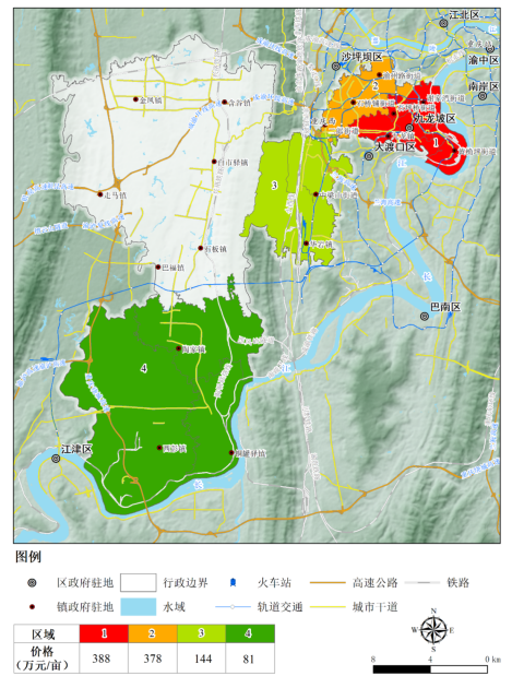 九龙坡区土地划拨片区价格分布图