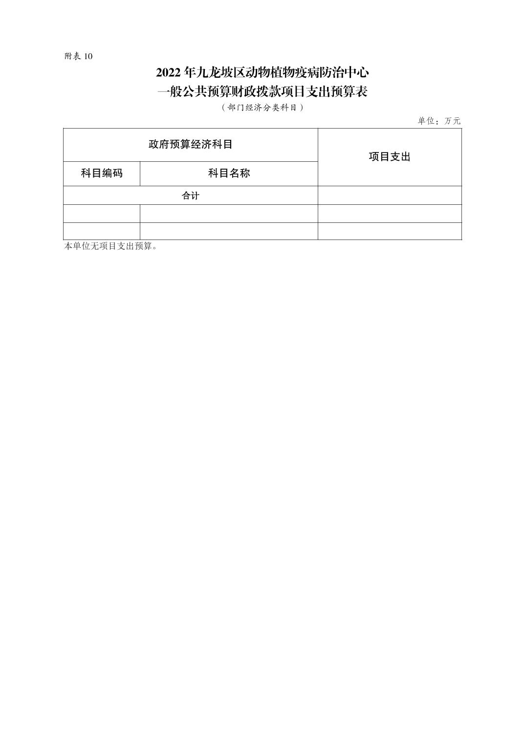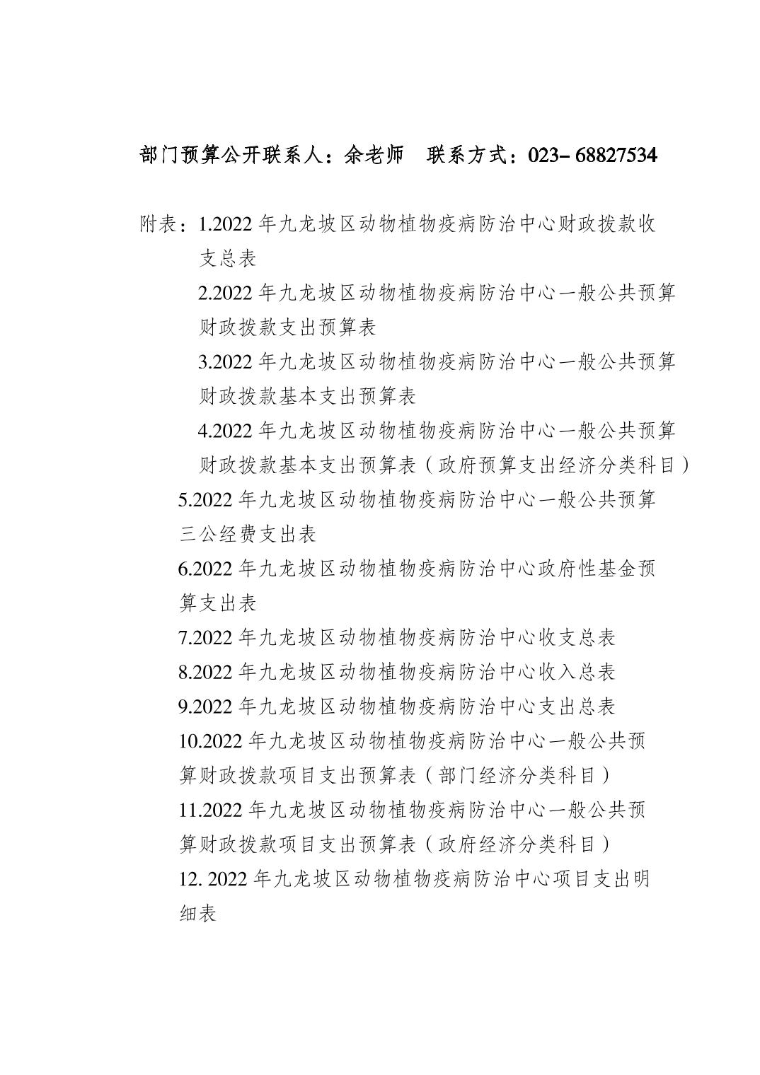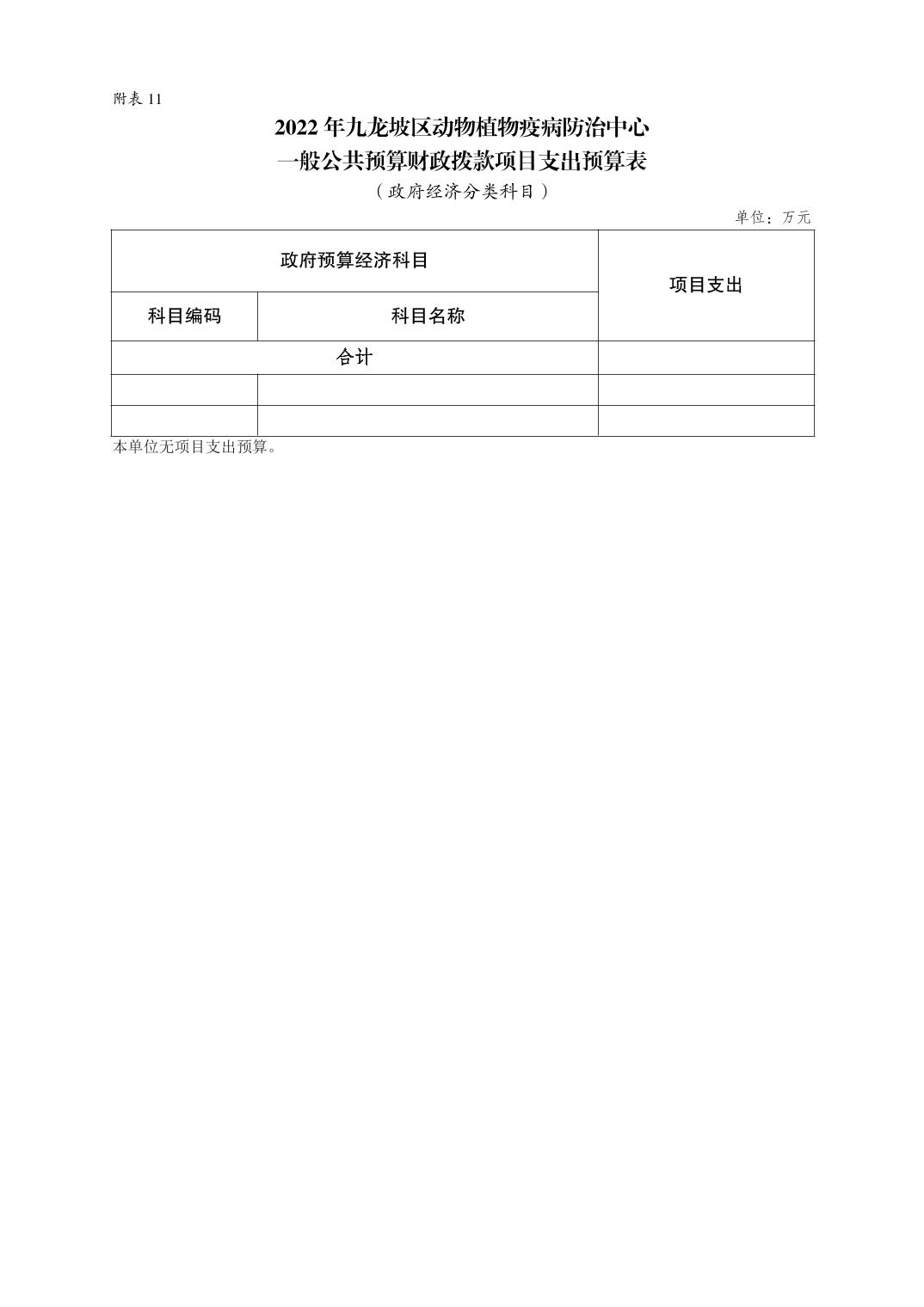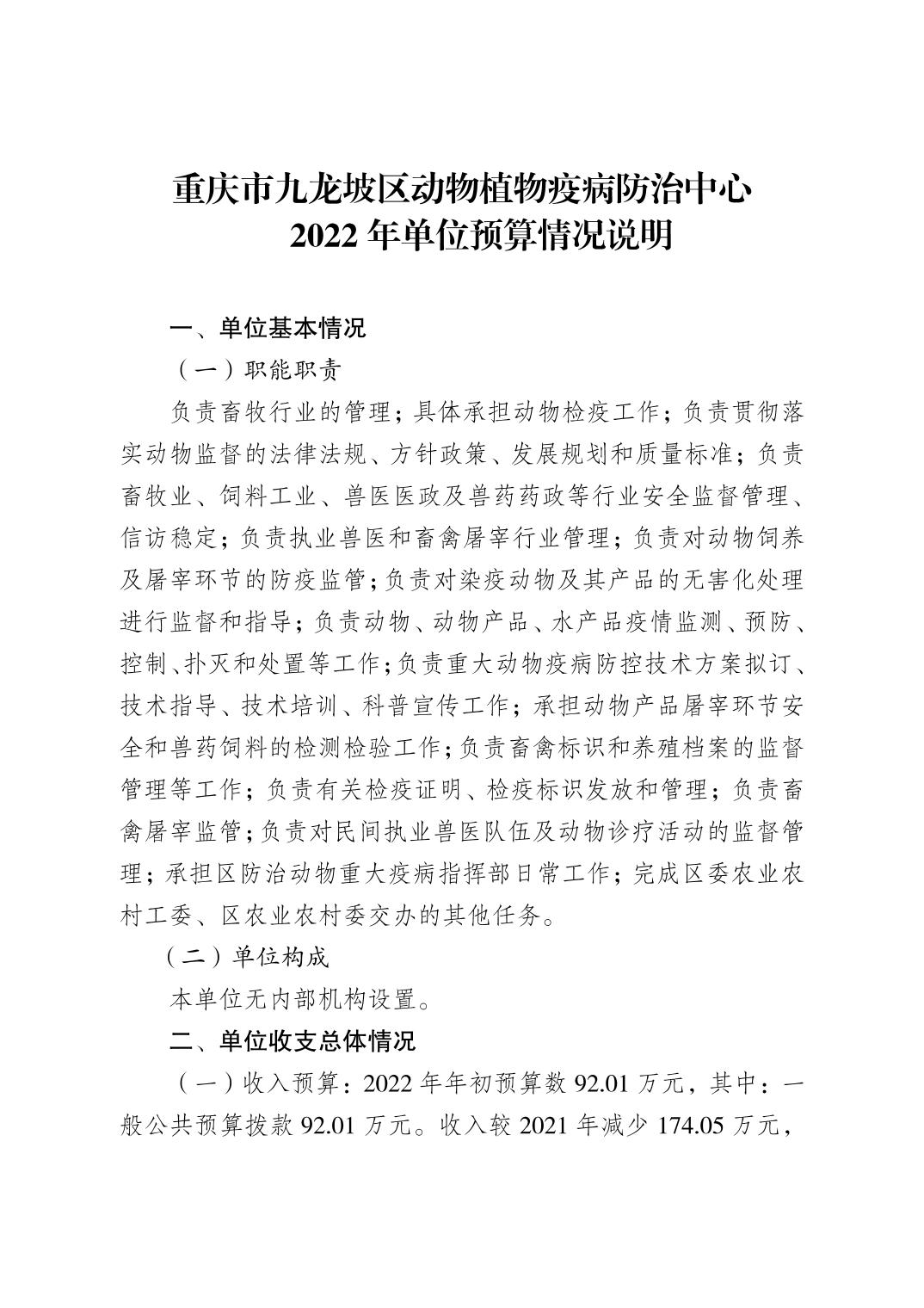 重庆市九龙坡区动物植物疫病防治中心2022年单位预算情况说明