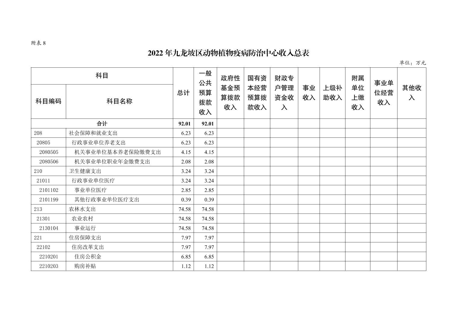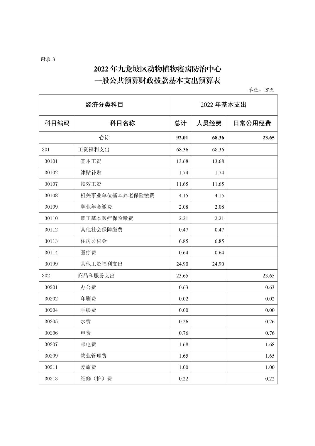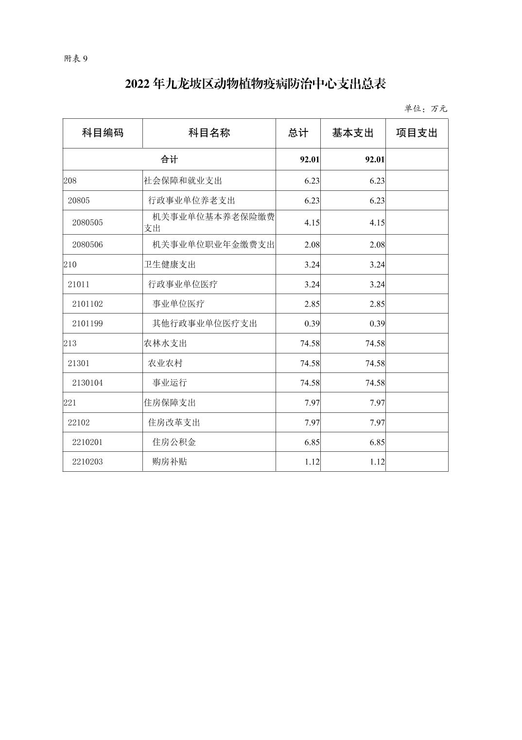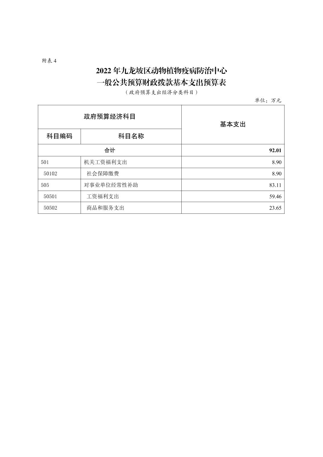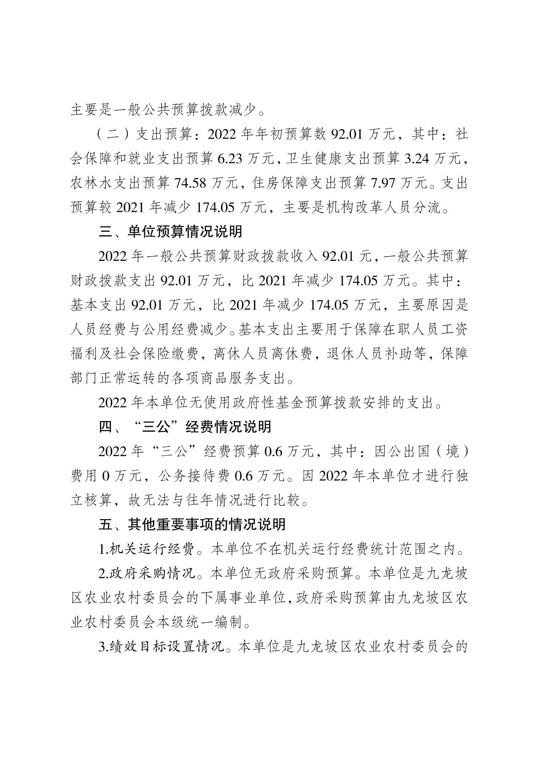 重庆市九龙坡区动物植物疫病防治中心2022年单位预算情况说明